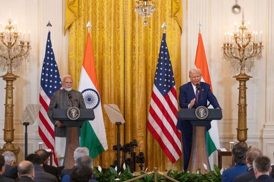 今年2月,美国总统特朗普(右)与印度总理莫迪在华盛顿白宫出席联合记者会。图源:新华社