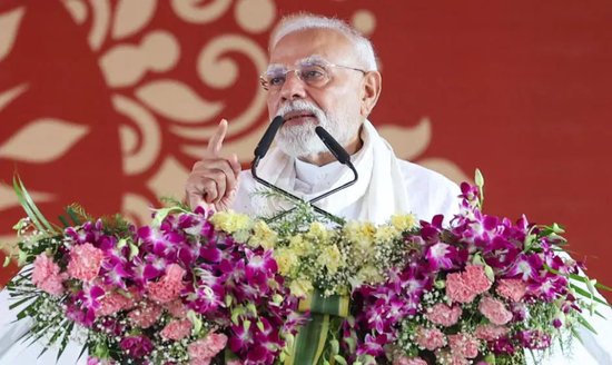 莫迪8月2日在印度北方邦城市瓦拉纳西的一个集会上发表讲话。图源:莫迪办公室网站